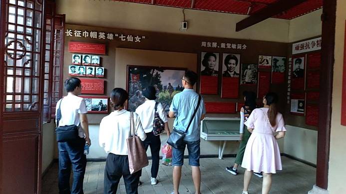 结束军部旧址的参观后,师生一行遵循着革命先辈的足迹,重走长征路,学习红军长征时的伟大精神。长征路上,同学们深深地体会到了路途的坎坷与艰辛,纷纷表示,一定要珍惜革命前辈为我们创造的今天,继承和发扬他们的长征精神,学习革命前辈的伟大精神,努力学习,报效祖国。接着来到了何氏祠旁的大银杏树下,这是一棵高约30米的大银杏树,掩映在青山翠绿中,和旁边的红军井、石墨盘等,一起见证了80多年前的一个夜晚,3000余名红军指战员聚集于此,高举中国工农红军北上抗日第二先遣队的旗帜,正式拉开了长征的序幕。在军部医院旧址,员工们知道了在物资紧缺的战争年代,红军自制中药药品,开展战地救死扶伤,极大地为红军伤员挽救了生命和减轻了病痛。红军医院不仅治疗伤病员,还为当地百姓看病,深受当地百姓赞誉。