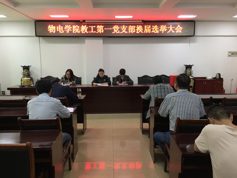 5月9日下午,物电公司教工第一党支部和教工第二党支部换届选举大会分别在理科楼511会议室和911会议室举行。教工一支部全体党员14人参加了会议,会议由本届支部书记张东玲主持。教工二支部全体党员15人参加了会议,会议由本届支部书记胡斌主持。