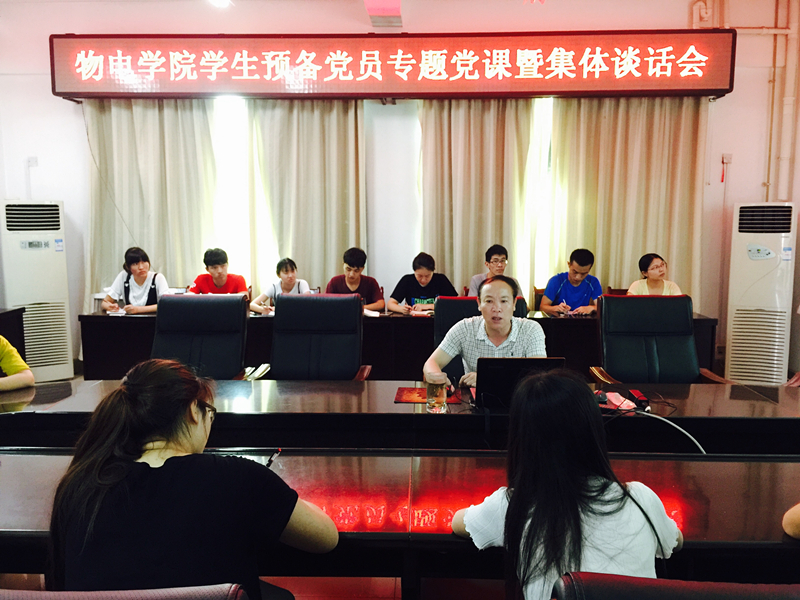 为增强员工党员党性意识,践行党的宗旨,发挥党员的先锋模范作用。6月21日,物电公司在理科楼911会议室召开员工预备党员专题党课暨集体谈话会。公司党委书记柳士刚、党委秘书张康华及23名预备党员参加了会议。
