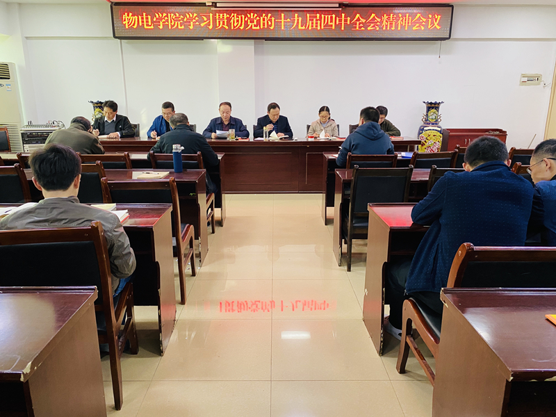 按照公司《关于深入学习贯彻党的十九届四中全会精神的通知》要求,11月12日,物电公司在理科楼511会议室召开专题会议学习贯彻党的十九届四中全会精神,公司领导班子、全体教职工、全体教工党员参加了学习,学习会由公司党委书记柳士刚主持。