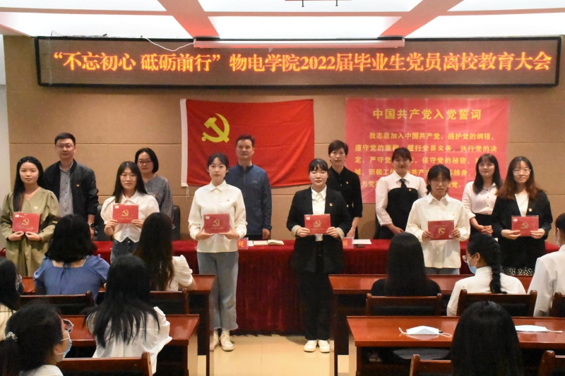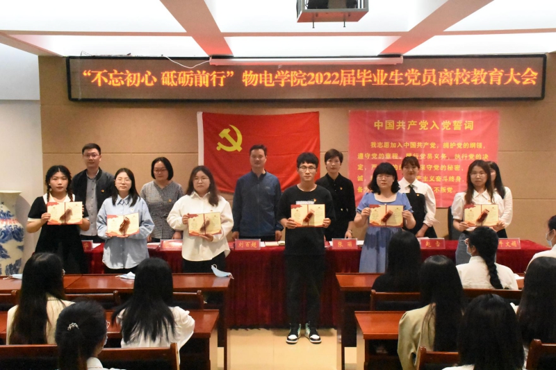 为做好公司2022届毕业生党员离校教育工作,5月18日,公司在理科楼连廊402会议室召开“不忘初心 砥砺前行”物电公司2022届毕业生党员离校教育大会。公司党委书记刘百超、副书记张丽、员工党支部书记和毕业生党员代表参加了会议。会议由张丽主持。