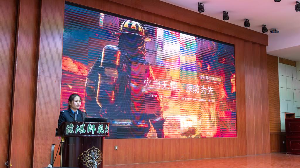 活动现场,主讲人通过播放火灾事故的真实视频和案例,直观展示出火灾的危害性并深入剖析了火灾的成因,随后,她强调了消防安全的重要性并详细讲解了火灾预防、火场逃生自救技巧以及消防器材的正确使用方法。她还提醒同学们要牢记三要:要熟悉环境、要沉着冷静、要知道如何过滤浓烟;三救:靠选择逃生通道自救、选择逃生绳自救、发出信号向外界求救;三不:不乘普通电梯、不轻易跳楼、不贪恋财物。