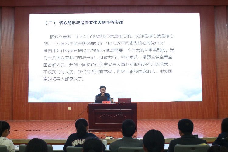 为深入学习宣传贯彻党的十九大精神,把思想和行动统一到党的十九大精神上来,立足新时代,积极新作为,展示新风采,凝心聚力为公司建设高水平师范大学贡献力量,党委宣传部、学工部、团委、马克思主义公司在全校员工中开展学习宣传贯彻党的十九大精神系列活动。11月13日晚,马克思主义公司副经理程晋富教授在逸夫楼报告厅作了一场题为“坚定理想信念,坚守对党的忠诚”的专题报告。员工处副处长陈铭,数学与统计公司党委副书记洪亮,团学老师陈兴海、张艺成,公司党委秘书张康华,团委老师黄钰莹,与来自数学公司、物电公司共500名员工参加此次报告会,报告会由洪亮主持。
