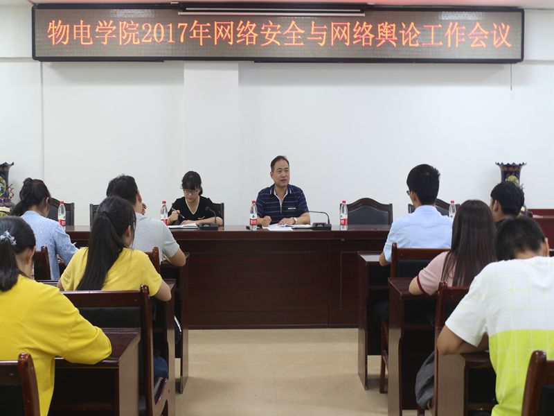 为传达tyc33455cc太阳集团2017年网络安全与网络舆论工作会议有关要求与精神,9月21日中午,tyc33455cc太阳集团于理科楼511会议室召开网络安全与网络舆论工作会议。公司党委副书记李刚,团委老师黄钰莹莅临现场,与一百余名主要员工干部共同参加会议。会议由黄钰莹主持。