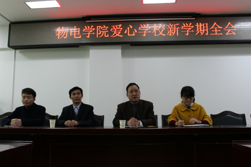 3月1日,物电公司爱心公司在理科楼举行新学期第一次全会。出席会议的有物电公司党委副书记李刚,团委老师黄钰莹,爱心公司社会指导老师王相亚,员工会主席龚佳全,副主席王娜杰以及爱心公司各部门代表。