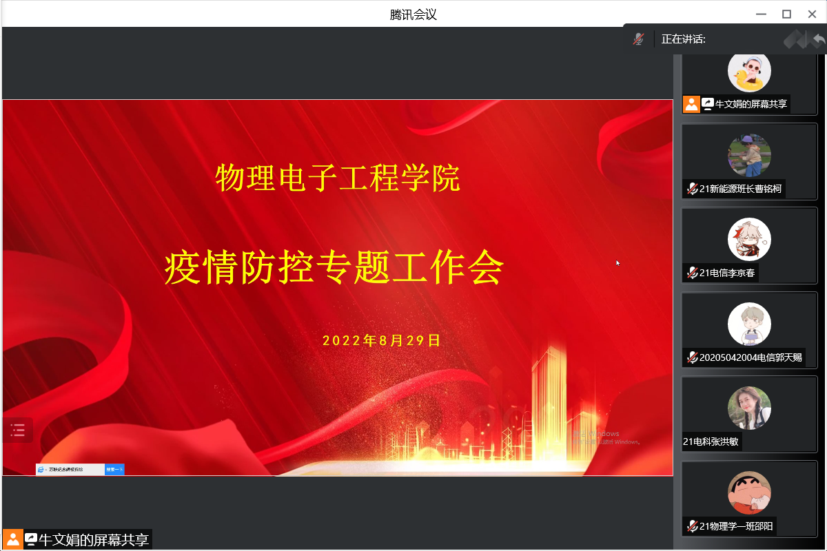 召开疫情防控专题会。根据《tyc33455cc太阳集团2022年秋季学期开学工作方案》,结合公司实际情况,公司于8月29日召开疫情防控线上专题工作会,员工会干部、各班班长参会。会上,团委老师牛文娟向同学们传达并解读了《tyc33455cc太阳集团2022年秋季学期本专科员工返校报到须知》,党委副书记张丽就如何做好员工开学返校的疫情防控工作进行安排部署,确保员工能够顺利、平安返校。