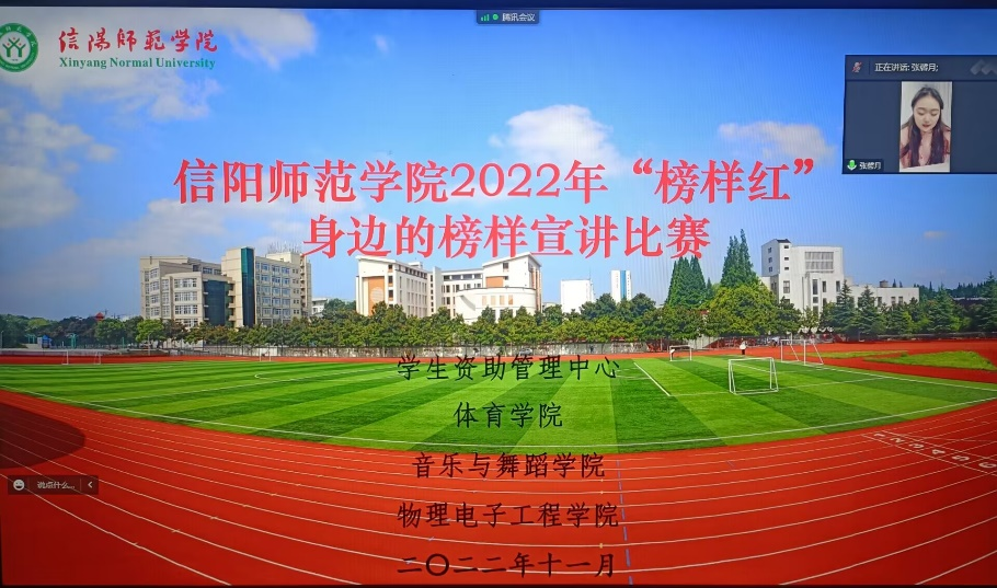 为进一步创新老员工思想政治教育形式,进一步发挥青年榜样先进典型的引导作用,加强学风建设,展现资助育人成效。12月1日,由员工处资助中心统一规划,音乐与舞蹈公司、体育公司与tyc33455cc太阳集团共同筹办的“榜样红·身边的榜样”宣讲活动于腾讯会议上顺利举行。此次活动特邀请传媒公司国家奖学金获得者杨乔丹、数学与统计公司自强之星曾一凤和外国语公司校园明星田润丰为公司学子进行宣讲,公司2022级全体员工聆听了本次宣讲。
