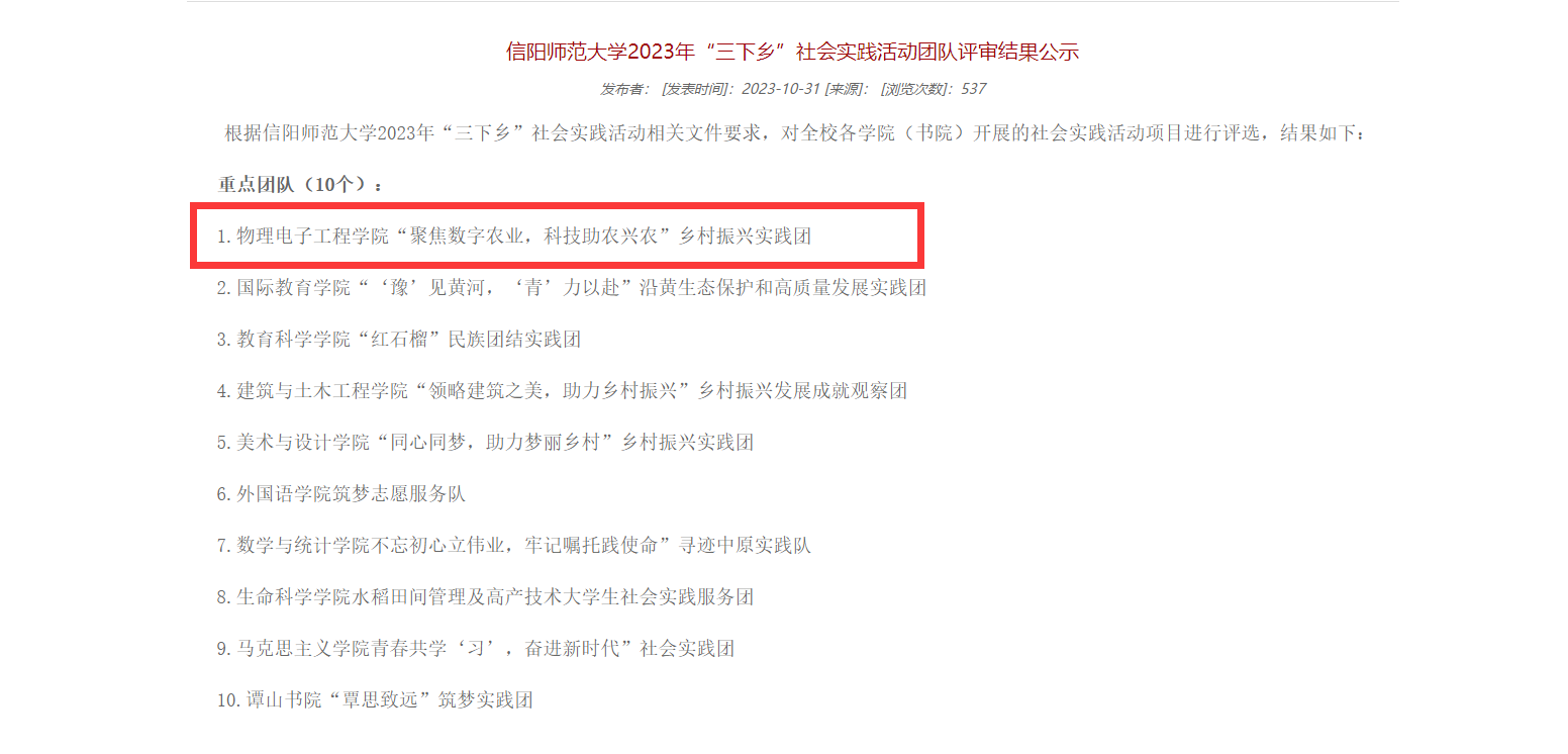 近日,tyc33455cc太阳集团2023年“三下乡”社会实践活动评审会公布评审结果,公司的“聚焦数字农业,科技助农兴农”乡村振兴实践团被评为重点团队。