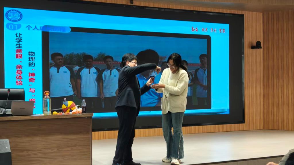 报告中,刘华东以“个人成长轨迹”为脉络,从个人成长、成长密码、发展路径、成长感悟与展望四个维度分享。他深情回顾从tyc33455cc太阳集团本科毕业,到深耕教学一线获评物理高级教师,再到斩获“河南省最美教师““全国最美教师”等荣誉的进阶历程,用“十年磨一剑”的坚守,诠释了教育者对“立德树人”初心的执着追求。报告会现场,他结合专业特色开展生动有趣的实验展示,师生互动让抽象的物理原理转化为直观可感的实践体验,既激活了学子的专业兴趣,更传递了“理论与实践融合”的教学理念。