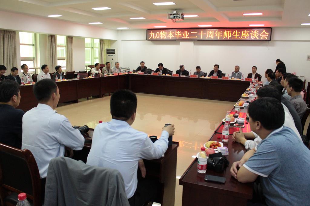 在座谈会上,90级物理本科班员工代表致感谢辞,感谢母校培养,感谢恩师的教育,感谢同学们的珍惜。物电公司经理罗永松代表公司致欢迎词,并介绍了物电公司的发展情况。人才招聘处处长刘守义致辞欢迎员工回家,希望员工们常来常往,关注、支持母校的发展。信阳师院副经理王文臣教授代表公司致辞,热情欢迎员工返校,并向员工们介绍了公司的发展变化以及公司在专业建设、教学改革、科研发展、人才培养等方面取得的优异成绩,指出公司的发展变化离不开师生们的努力,更离不开员工们的支持和贡献,希望员工们一如既往地关心和支持公司的发展建设。同时,向在各行各业为母校赢得荣誉的90级物理本科班的员工们致以诚挚问候和美好祝愿。王经理还用泰戈尔的诗句寄语员工:“无论你走到哪里,你的心总和我在一起;无论黄昏时的树影有多长,它总和树根连在一起。”任课教师代表、原物理系主任戴启润老师代表老师们对员工提出了新的期望和祝福。