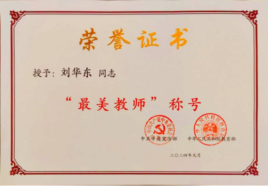 公司2011届员工刘华东荣获全国2024年“最美教师”称号