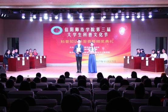 比赛在活力四射的两段开场舞中拉开序幕,随后正式进入科普知识抢答赛环节。本次比赛分“有问必答”、“争分夺秒”、“有惊有险”、“乘胜追击”、“谁是英雄”等五个环节。题目有文字题、图片题、视频题和现场实验演示题等多种类型,内容涉及天文、地理、物理、化学、生物、医药、建筑等多个领域。抢答环节采用QQ抢红包的方式进行,新颖独特,趣味性强。同时,为充分调动现场观众的积极性,能让每一位同学都能参与其中,抢答赛各环节之后分别穿插有现场互动有奖问答。
