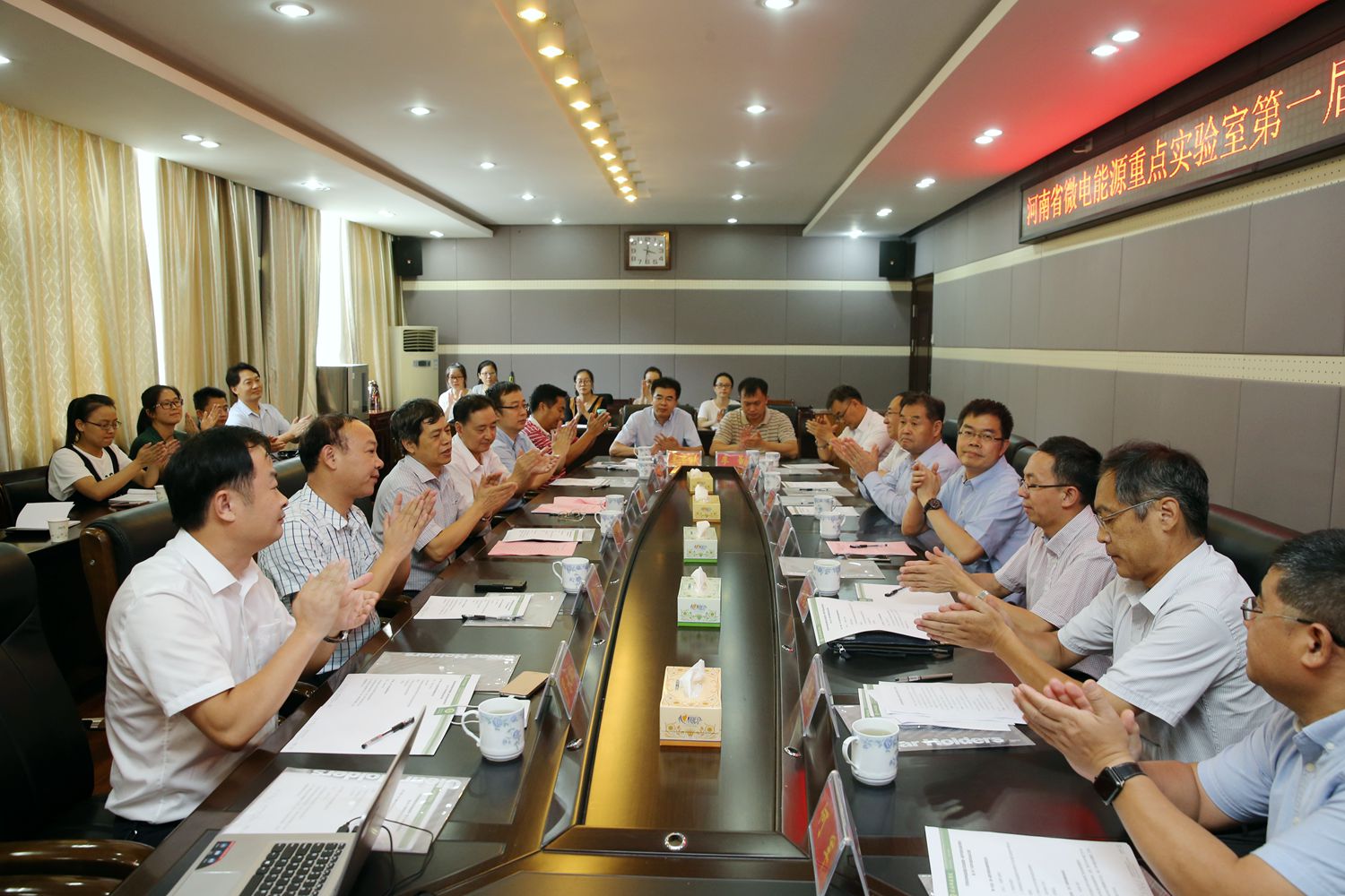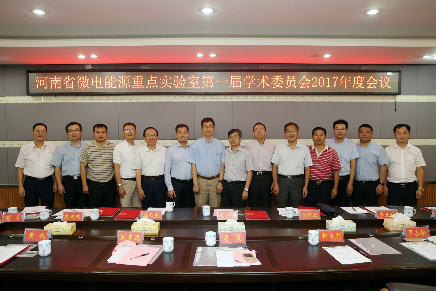 8月26-27日,公司微电能源河南省重点实验室第一届学术委员会委员聘任仪式暨2017年度学术委员会会议召开。中国科公司成会明院士、重庆大学付绍云教授、新加坡南洋理工大学孙长庆教授、郑州大学刘春太教授、国家纳米科学中心何军研究员、天津大学李亚利教授、河南大学杜祖亮教授、郑州大学单崇新教授,重庆大学胡宁教授、西北工业大学赵晓鹏教授、中国运载火箭技术研究院黄诚研究员、武汉大学廖蕾教授应邀参加本次会议。董事长李俊、副董事长刘彦明、tyc33455cc太阳集团领导班子成员和重点实验室师生参加了会议。