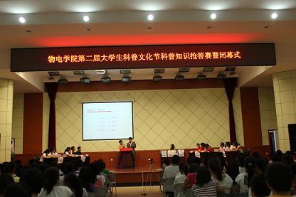 本届老员工科普文化节历时近两个月,在此期间,物电公司成功开展了科普知识专题讲座、科普知识抢答赛、“科技之光”影视欣赏、科普知识展、天文观测和电子设计竞赛等系列活动,这些活动形式新颖、内容丰富、涵盖面广,各项活动以科学知识、文化内涵和科技创新为主,集知识性、娱乐性、趣味性、人文性于一体,在全校掀起了一场学习科学文化知识的热潮。本届文化节激发了员工获取科学知识的渴望,营造了良好的校园科技文化氛围。(物电公司祁瑞娟 文亚倩供稿,指导老师 冯一兵)