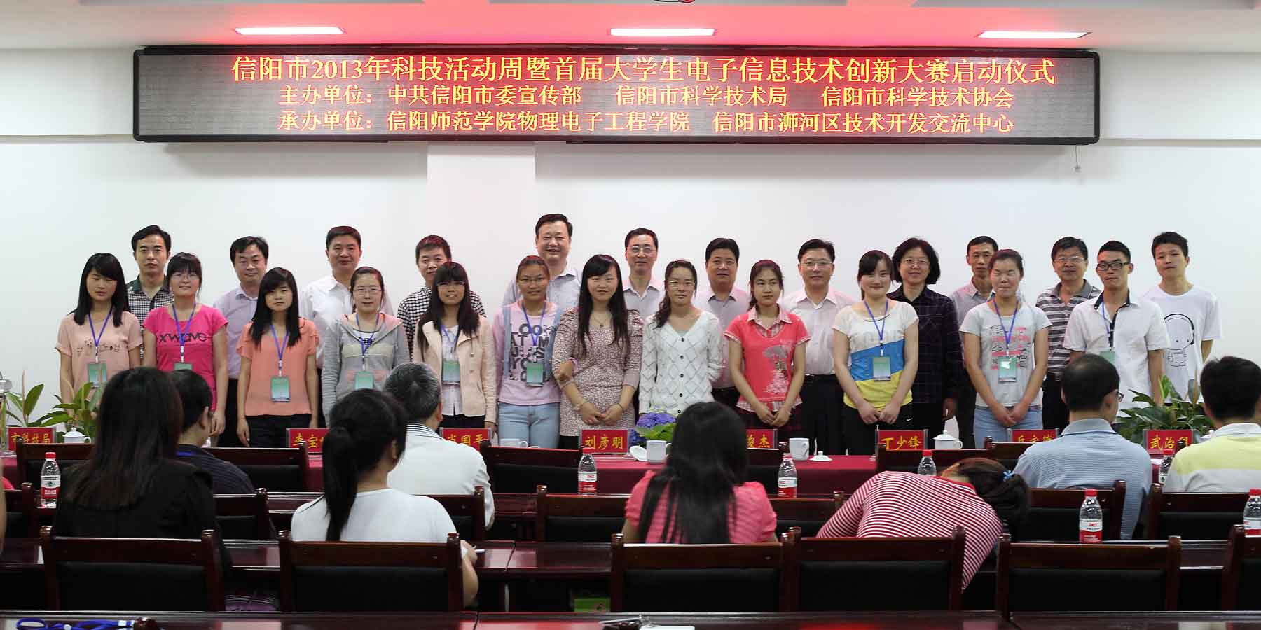5月19日,“信阳市2013年科技活动周暨首届老员工电子信息技术创新大赛”启动仪式在公司理科楼5楼多功能报告厅举行。信阳市科技局党组书记、局长肖国平,浉河区副区长李俊杰,浉河区科技局局长张晓华,公司副董事长刘彦明,宣传部部长丁少峰、教务处处长李宝峰、科研处处长余本海、员工处处长岳宗德、团委副书记武治国及各相关负责人和100名师生代表参加了大会。启动仪式由tyc33455cc太阳集团经理罗永松主持。