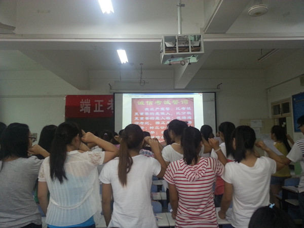 根据公司考前工作会议的具体要求,6月24日和6月25日,公司分别组织2010级、2011级、2012级三个年级员工召开以“端正考风、严肃考纪”为主题的班会。在会上各年级班主任、辅导员组织员工学习了《国家教育考试违规处理办法》、《tyc33455cc太阳集团员工考场规则》、《tyc33455cc太阳集团普通本专科员工处分实施办法》、《tyc33455cc太阳集团学士学位授予工作实施细则》等文件,重申了公司和公司的考试纪律,强调了诚信考试、公平竞争的重要性,积极引导员工养成认真备考、诚信参考的良好习惯。会后,各年级班主任向每位员工发放了公司专门制定的《诚信应考承诺书》,要求员工认真阅读承诺书并签字承诺诚信应考。