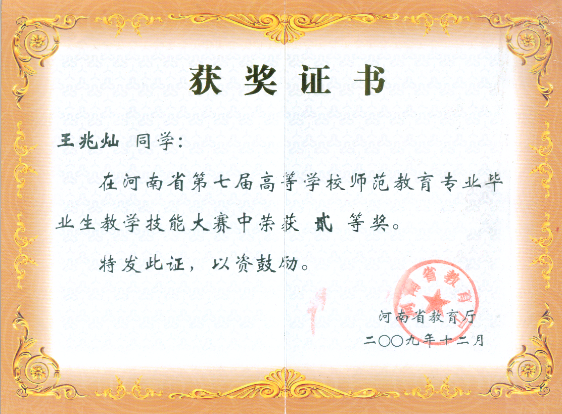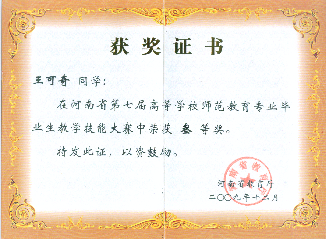 2009-河南省第七届-教学技能大赛证书