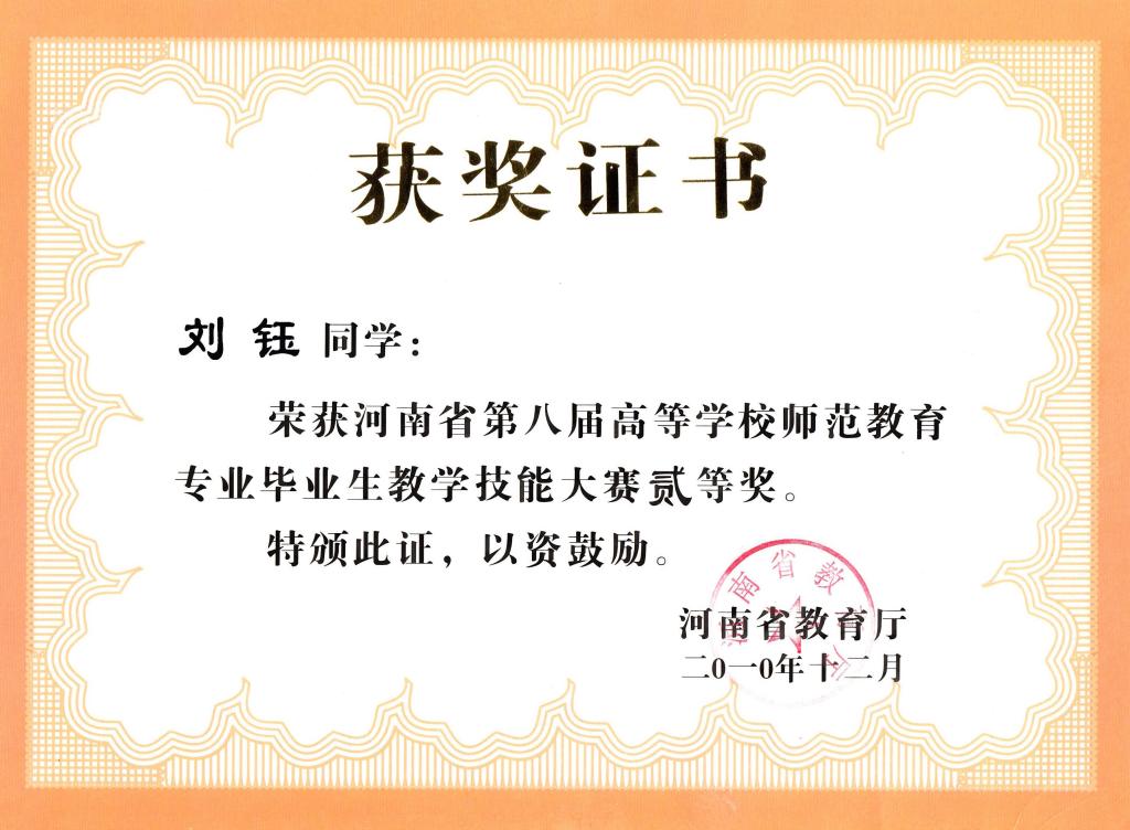 2010-河南省第八届-教学技能大赛证书