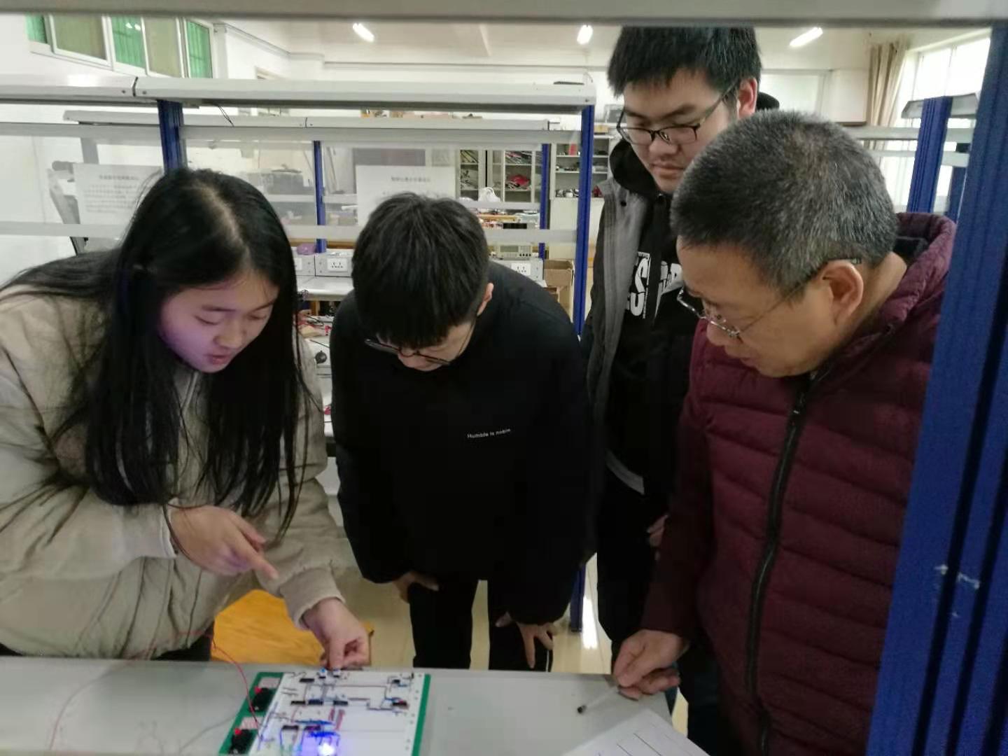 为确保此次验收工作的顺利开展,公司委派钟莉娟老师和余大庆老师在前期做了充分的准备,2019级电子信息工程和电子科学与技术专业的学子们利用课余时间在理科楼北楼505展开为期四周的数电课程设计学习。期间,为确保员工硬件电路制作和调试工作的顺利完成,指导教师严格要求员工,并就员工提出的相关问题进行耐心指导。学子们也积极查阅相关资料,根据原先确定的设计方案和已经仿真成功的电路,通过科学的检测手段和方法,对设计思路、设计方法、调试方法、调试原则等方面进行了更加深刻的理解和体会,并进一步深入理解和把握了数字电子技术基础课程的相关理论知识。