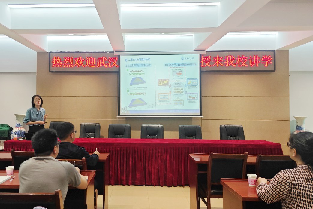 5月12日,应公司邀请,武汉理工大学丁瑶教授来公司讲学,在理科楼会议室作了题为“能带工程与二维半导体薄膜材料”的学术报告。公司教师、研究生及本科生聆听了报告。报告会由副经理刘墨林主持。