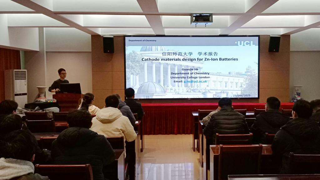 12月21日,应公司邀请,伦敦大学公司何冠杰教授在理科楼连廊402报告厅作了题为“高性能水系锌离子电池的正极材料设计”的学术报告。报告会由副经理刘墨林主持,公司部分教师及研究生聆听了报告。