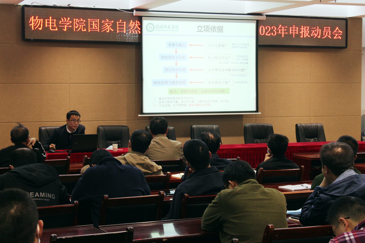 为加强国家自然科学基金项目管理、积极推动2023年申报工作,10月18日公司在理科楼四楼会议室召开了“国家自然科学基金项目总结暨2023年申报动员会”。公司党委书记刘百超、经理涂友超、副经理龚克、刘墨林、汤清彬出席会议。具有高级职称、博士及拟申报2023年国家自然科学基金项目的50余名教师参加了动员会。会议由龚克主持。