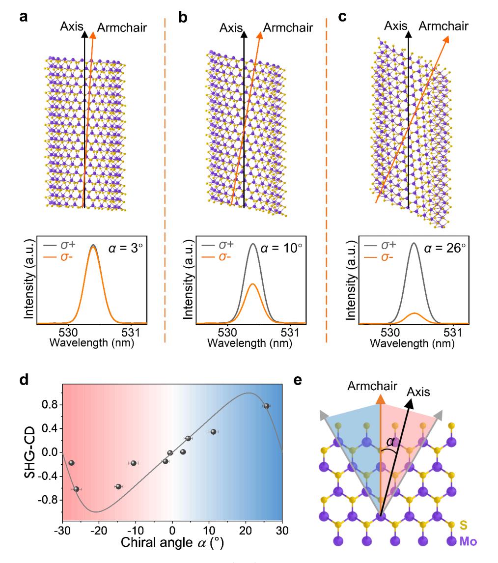 该研究基于二维过渡金属硫化物(TMDs)的纳米结构,实现了非线性SHG的CD的增强与调控。研究发现,当单层TMDs卷曲成一维的纳米卷后,非线性二次谐波SHG的圆二色性实现了明显增强, CD值高达0.8。通过调控纳米卷的卷轴方向,非线性SHG的CD强度可人工调节。此外,由于结构中的Mie散射共振,纳米结构中的局域电磁场可将SHG强度提升至单层材料的100倍。